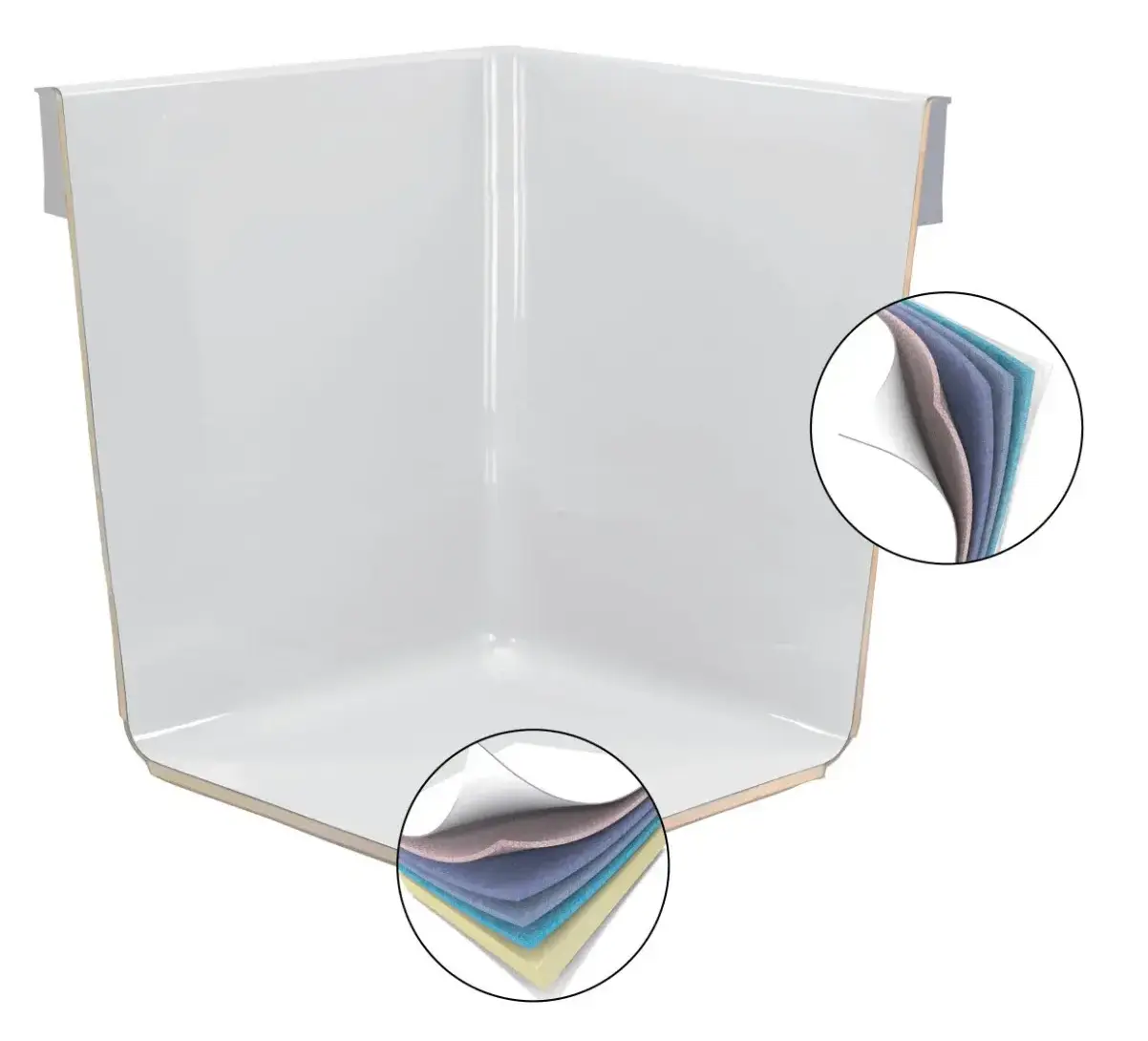 Feinzellschicht zur Minimierung von Faserprint auf der hochglänzenden Oberfläche. Macht das Becken spürbar glatter